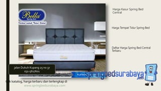 Dokumen ini menyajikan informasi mengenai harga dan jenis kasur spring bed yang tersedia di Angel Springbed, termasuk berbagai merek seperti Comforta dan American. Pengunjung dapat mengecek katalog dan harga terbaru di situs www.springbedsurabaya.com. Lokasi toko terletak di Jalan Dukuh Kupang 25 No 37, Surabaya.