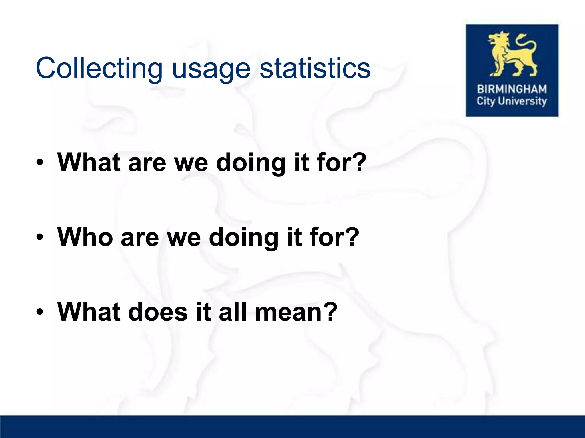 This document discusses the role of usage statistics in collection management. It explains that usage statistics provide essential evidence to show how e-resources are being used, look at trends over time, and inform renewal/cancellation decisions. Different audiences for usage statistics include library directors, academic staff, and subject librarians. The document also discusses standards like COUNTER for collecting usage statistics and initiatives like JUSP that provide a single point of access to usage data from multiple publishers.