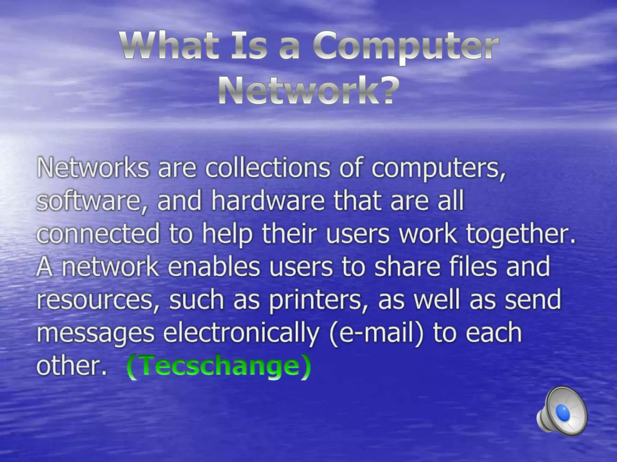 This document summarizes how computer networks work in schools. It explains that Bel Air High School has switches that allow staff, students, and computers to connect to the school server and share information. Classroom computers connect to the server to access shared files and resources. Staff can post information to a shared drive for others in the school to access. The document also provides an overview of different types of computer networks, including local area networks (LANs) within a single location, wide area networks (WANs) that connect multiple LANs across large distances like the Internet, and choices between peer-to-peer and client-server network models.