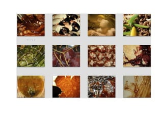 This AP Studio Art portfolio focuses on food presentation and preparation. The student's concentration statement discusses how aesthetics are important to food and how growing up in a family of foodies shaped their life around cuisine. The portfolio includes 18 works exploring themes like different foods, cooking techniques, and the rhythm of meal preparation from appetizers to cleanup.