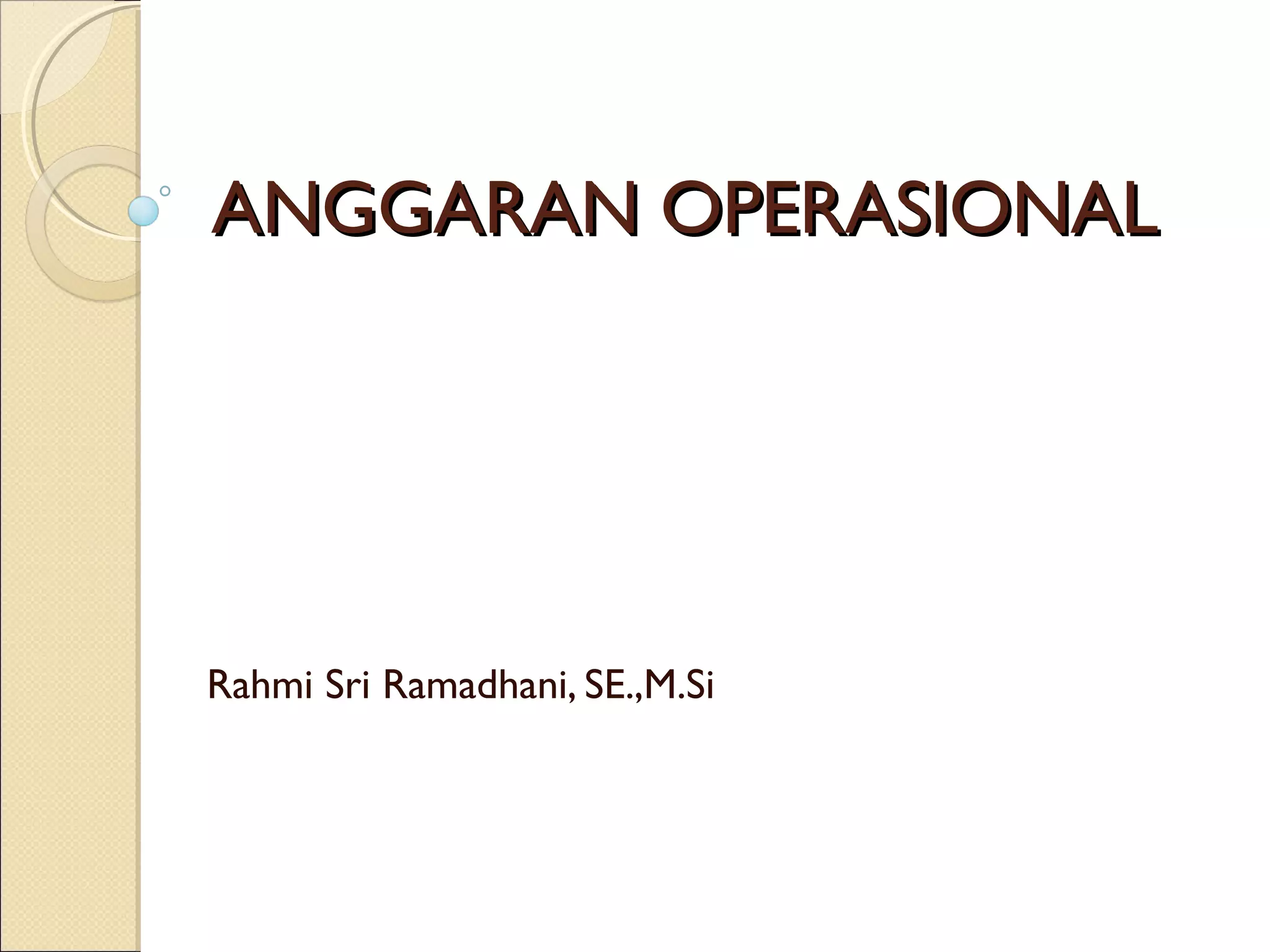 Dokumen ini membahas tentang anggaran operasional dan anggaran laba perusahaan, termasuk definisi dan metode penyusunannya. PT. Alaskakindo, sebagai contoh, memproduksi sepatu anak dengan bahan baku yang sama, dan berbagai metode penyusunan anggaran seperti a posteriori, a priori, dan pragmatis dijelaskan. Format dasar anggaran laba juga disajikan untuk memberikan gambaran struktural tentang perhitungan laba yang diharapkan perusahaan.