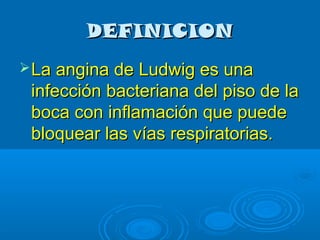 ddee LLuuddwwiigg eess uunnaa iinnffeecccciióónn bbaacctteerriiaannaa ddeell ppiissoo ddee llaa bbooccaa ccoonn iinnffllaammaacciióónn qquuee ppuueeddee bbllooqquueeaarr llaass vvííaass rreessppiirraattoorriiaass..