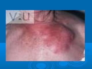 ddeell ccuueelllloo yy ddee llaa ccaabbeezzaa.. EEnnrroojjeecciimmiieennttoo ee iinnffllaammaacciióónn ddee llaa ppaarrttee ssuuppeerriioorr ddeell ccuueelllloo ddeebbaajjoo ddee llaa bbaarrbbiillllaa,, llaa ccuuaall ssee ppuueeddee eexxtteennddeerr hhaassttaa eell ppiissoo ddee llaa bbooccaa..