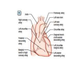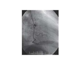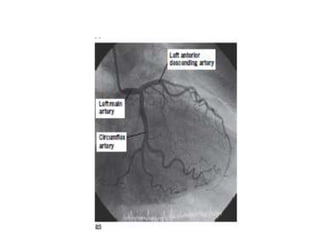 Angiography, also known as cardiac catheterization, is a technique where a catheter is inserted into an artery or vein and guided into the heart under x-ray guidance. This allows measurements of pressures in the heart chambers, collection of blood samples, and injection of contrast dye to obtain angiograms of the heart and blood vessels. Specifically, right heart catheterization involves advancing the catheter into the right side of the heart and pulmonary artery, while left heart catheterization requires entering the left ventricle and aorta. Both techniques provide diagnostic information and assess cardiac function.
