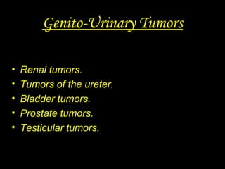 This document discusses angiomyolipomas (AML), a type of benign renal tumor composed of blood vessels, smooth muscle, and fat cells. It describes the typical presentation of isolated and tuberous sclerosis-associated AML, including that isolated AML most often present as solitary lesions in the right kidney in women, while AML associated with tuberous sclerosis are typically bilateral and occur equally in men and women. Imaging findings are also summarized, noting the characteristic fat content visible on CT and MRI that appears echogenic on ultrasound and enhances heterogeneously after contrast. Angiography further demonstrates the hypervascular and tortuous nature of AML vasculature.