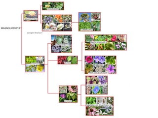 The document summarizes the recent APG system of plant classification which is based on phylogenetic analysis of DNA sequences and morphological data. It outlines the main clades recognized in the system including basal angiosperms containing Amborellaceae, Nymphaeales and monocots. Magnolids contain four orders while eudicots are divided into basal and core eudicots. Core eudicots include rosids and asterids, with rosids further divided into eurosids I and II. Each clade contains representative orders and families. The APG system strictly follows the principle of monophyly and is based on evidence from multiple sources, though some limitations remain regarding placement of some families.