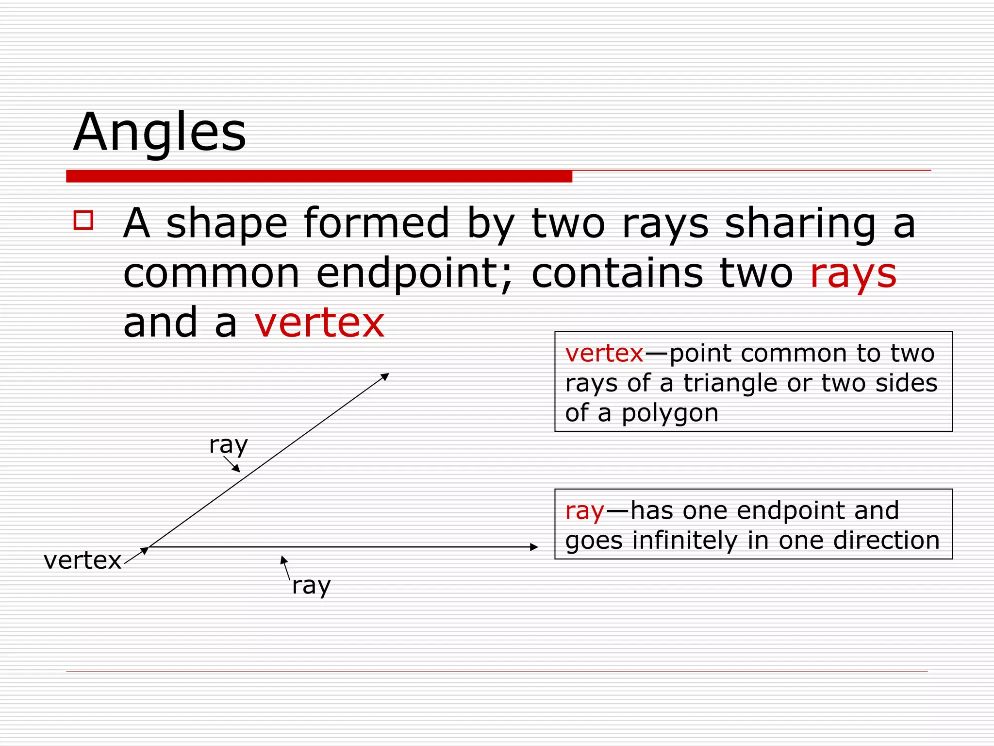 This document defines and describes different types of angles and triangles. It discusses acute, right, and obtuse angles. It also defines equilateral, isosceles, right, and scalene triangles. The document notes that the interior angles of a triangle always sum to 180 degrees and that angles are measured using a protractor.