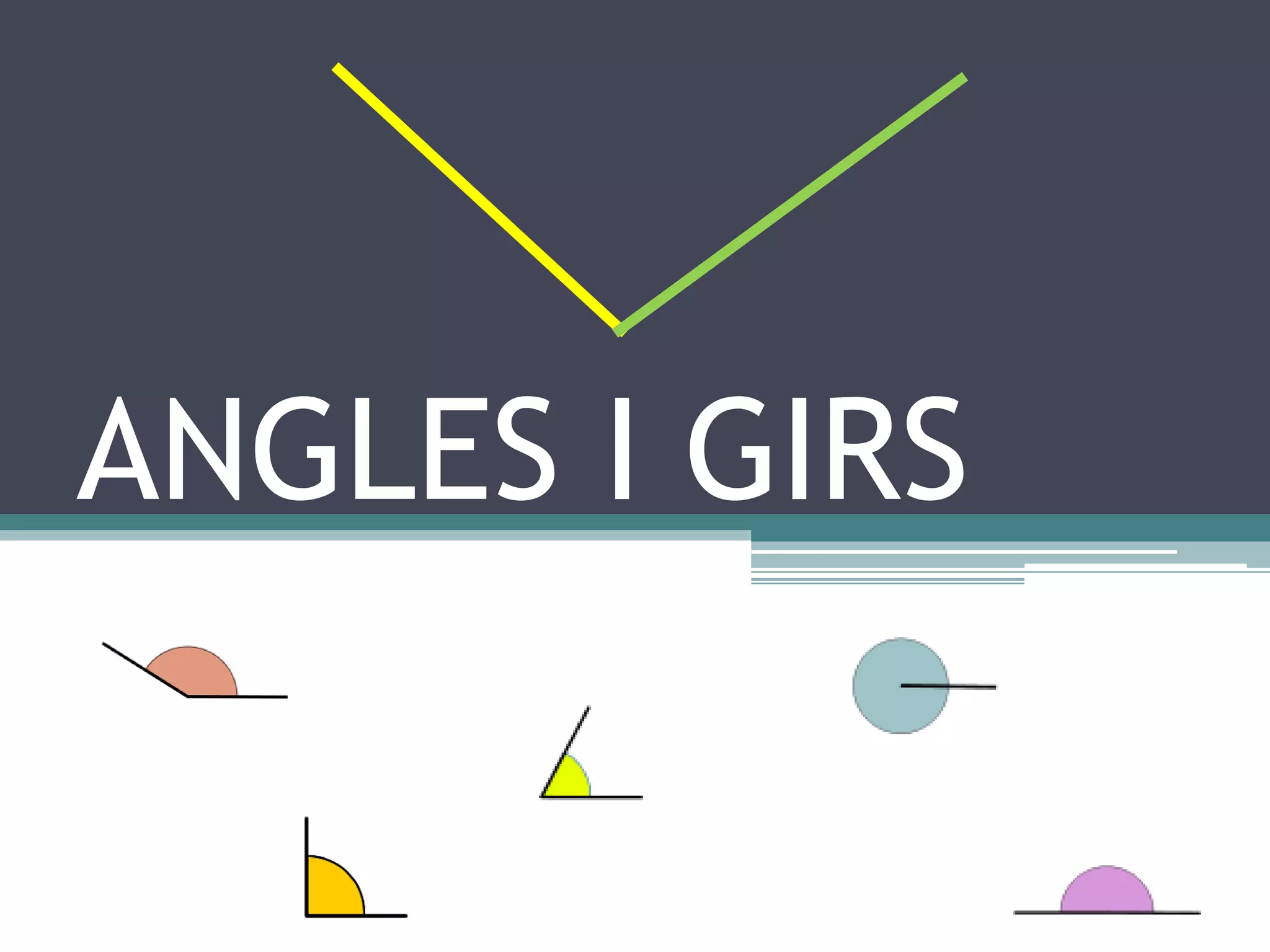 Senzilla informació sobre angles i girs: Concepte d’angle, unitat de mesura dels angles, tipus d’angles, mesura d’angles, el transportador, construcció d’angles amb el regle i el transportador, bisectriu, estimació d’angles, girs,...