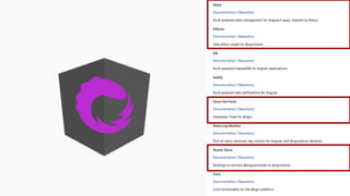 This document summarizes Angular component communication patterns. It discusses using @Input and @Output to communicate between parent and child components. It also covers using a shared service to communicate between siblings and across the component tree. Services can utilize BehaviorSubject to share state updates through observables. Larger applications may use a state management library like NgRx to introduce a single source of truth via a centralized store.