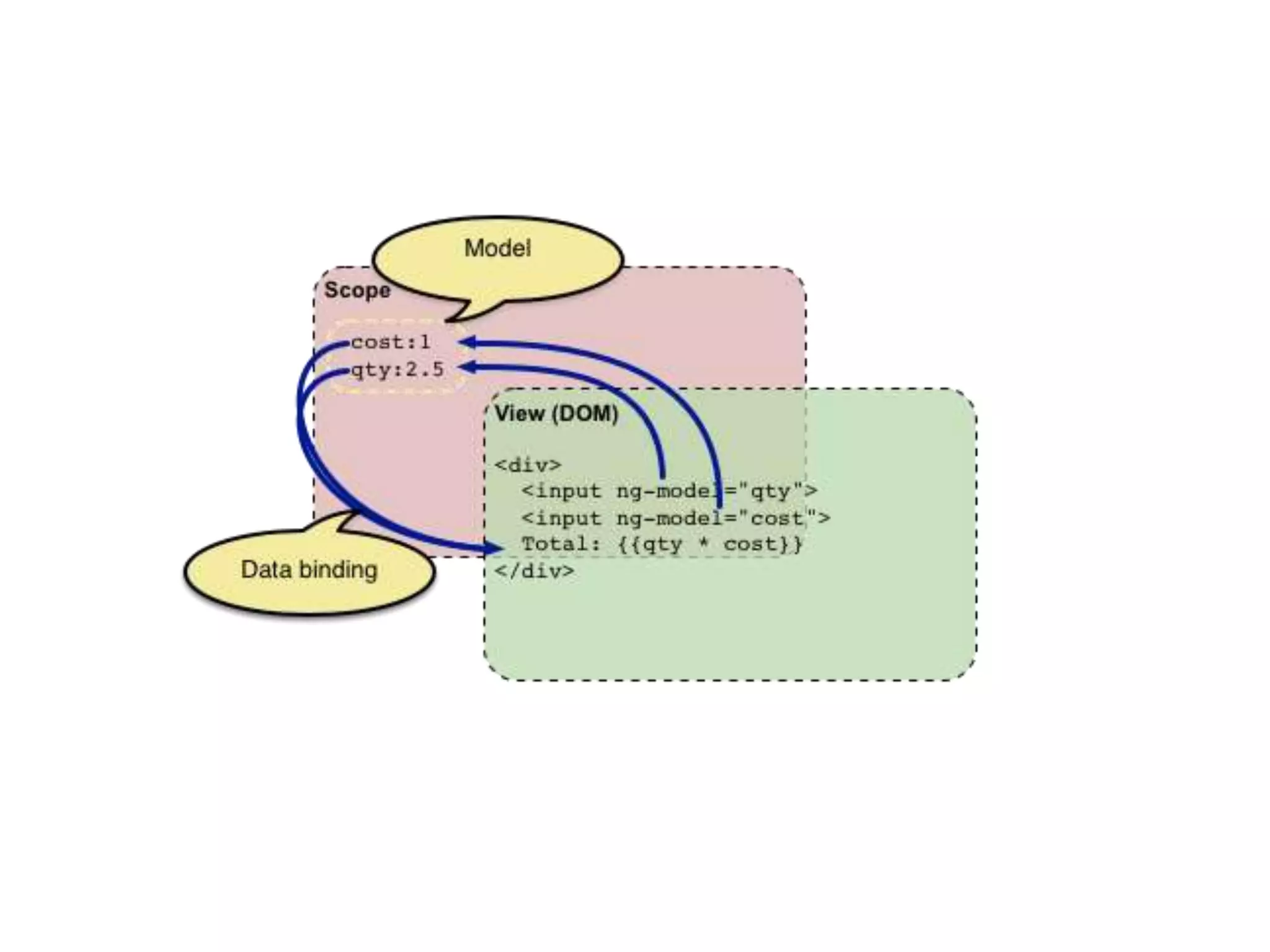 AngularJS is a JavaScript MVC framework that uses Dependency Injection. It encourages writing unit testable code without JQuery or Observables. The basic concepts include Models for data, Views for the user interface, Controllers for application logic, and Scopes that connect data and behavior. Data binding in Angular allows writing interactive apps without custom JavaScript. Expressions and filters are used to display data. Controllers contain UI logic and Services provide shared logic across controllers.