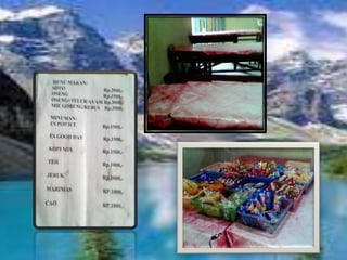 Kantin SMK Negeri 1 Sukoharjo adalah tempat makan yang menyediakan berbagai makanan dan minuman untuk siswa. Menu yang ditawarkan termasuk nasi kuning, nasi goreng, aneka gorengan, dan berbagai minuman dengan harga terjangkau. Kantin ini dikelola oleh Ibu Gandung dan mengajak siswa untuk datang dan menikmati hidangan yang ada.