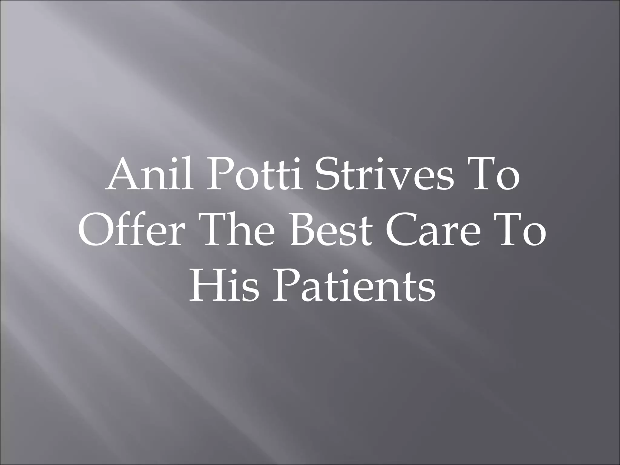 Anil Potti is a board-certified medical oncologist specializing in lung cancer, providing thorough care and treatment for his patients in the United States. He has received numerous awards for his contributions to the field and is actively involved in multiple medical organizations. In addition to his professional commitments, Potti supports humanitarian efforts and values family time and personal interests.
