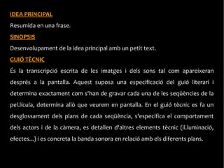 pel.lícula, determina allò que veurem en pantalla. En el guió tècnic es fa un
