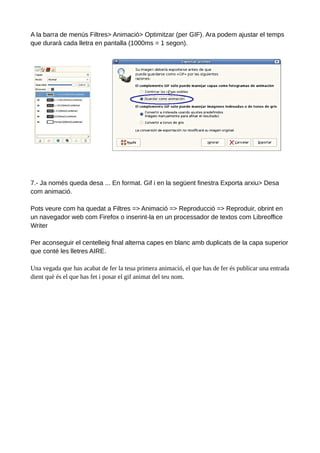 7.- Ja només queda desa ... En format. Gif i en la següent finestra Exporta arxiu> Desa