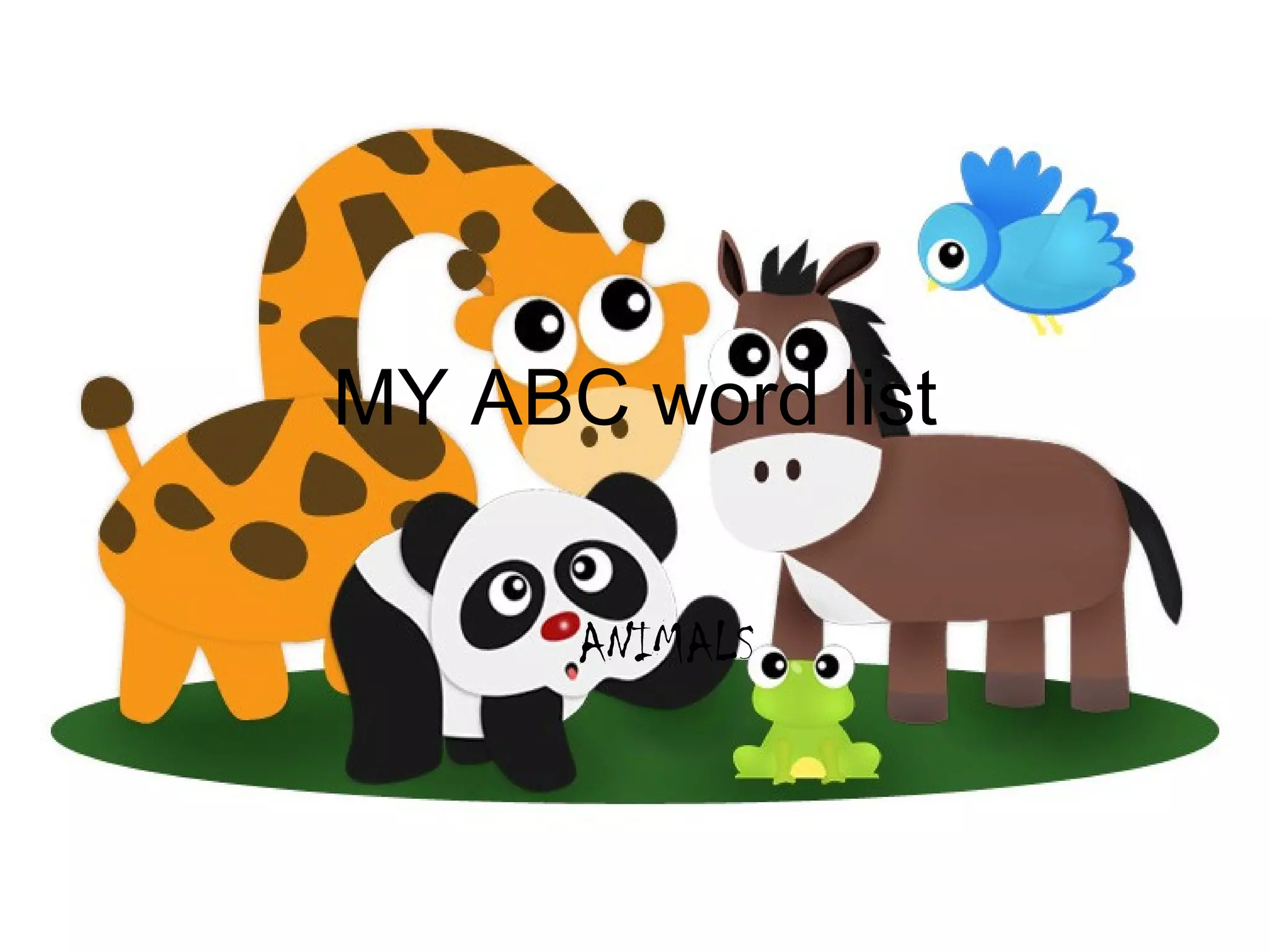 1. The document is a 12-year-old student's ABC word list about different animals.
