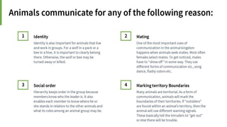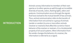 Animals living in groups utilize specific calls and movements to alert fellow members of approaching predators, enabling them to either escape or defend together. Additionally, these groups communicate about food sources through various signals such as calls, body motions, and chemical cues. Such communication is crucial for their survival and for effective foraging.