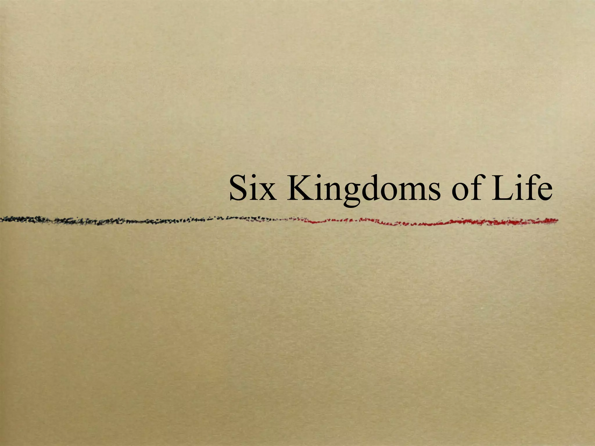 The document describes the six kingdoms of life - Eubacteria, Archaebacteria, Protista, Fungi, Plantae, and Animalia. It provides key details about each kingdom, including whether they are prokaryotic or eukaryotic, unicellular or multicellular, and how they obtain nutrients (autotrophic or heterotrophic). Examples are given for common organisms from each kingdom.
