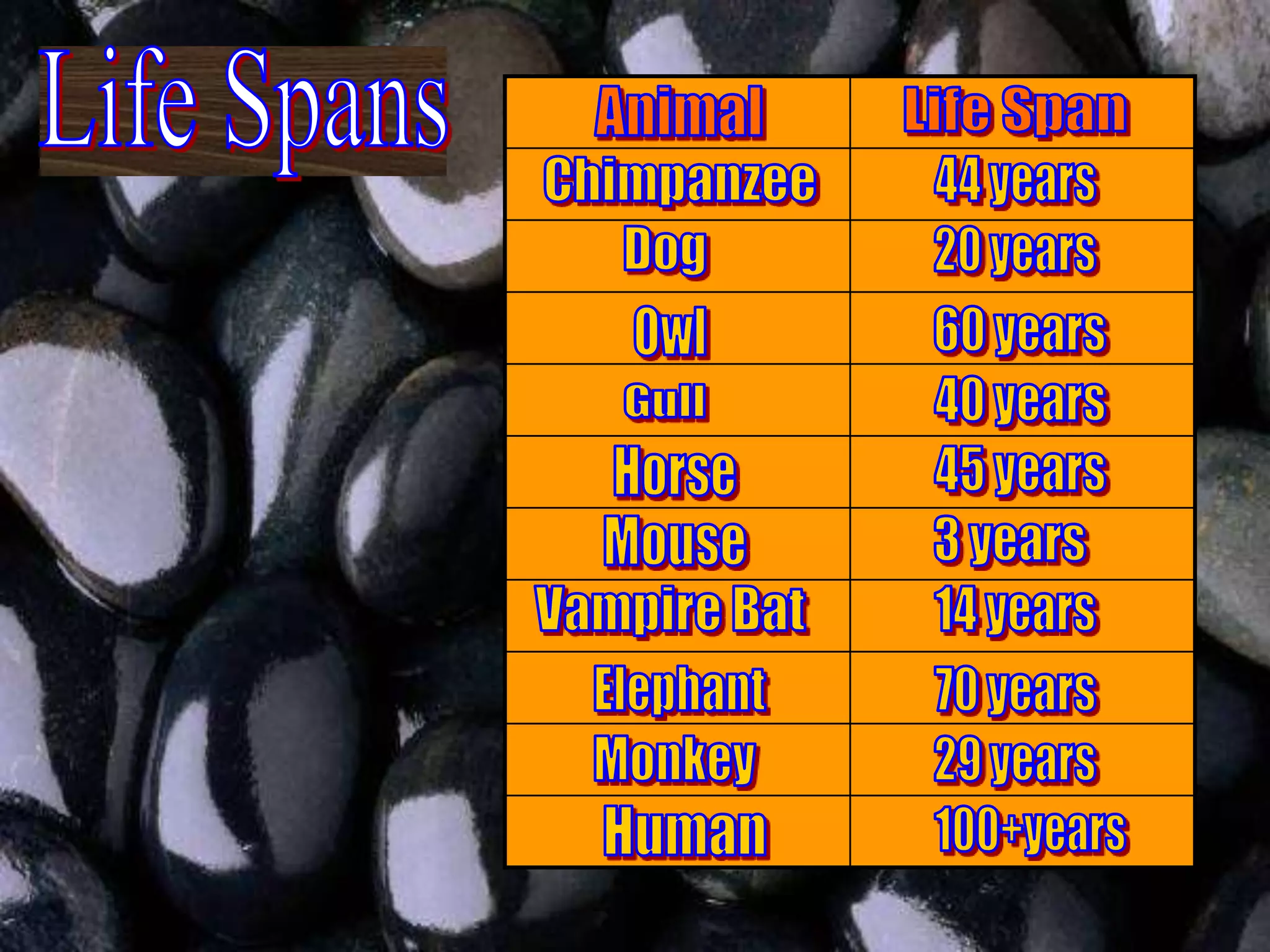 Animals go through a life cycle that includes birth, growth, reproduction, and death. They are born live or from eggs, grow into adults, have young of their own, and eventually die. An animal's life span starts at birth and ends at death, and varies between different species from 10-20 years for female tarantulas up to 50-60 years for alligators.