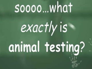 This document discusses the debate around the use of animals in scientific research. While animal research has contributed to medical advances and is still used to study diseases, the practice is controversial as some view it as cruel and argue alternative methods now exist. Regulations require minimizing animal use and suffering, but others believe animal lives have intrinsic value beyond just suffering. Toxicology testing on animals makes up a large portion of research, and involves testing products without anesthesia, though classifications are used to assess suffering levels. Proponents argue animal research has been vital to medical advances, while critics call for public inquiries to reconsider its effectiveness and necessity.