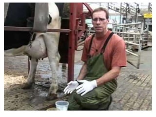This document provides information on procedures for examining urine, skin scrapings, and milk from various animal species. It describes how to collect and store samples, and outlines the steps for chemical, microscopic, and cultural examinations. Key points covered include normal versus abnormal findings for pH, glucose, protein, ketones, bilirubin, blood, and sediments in urine. Examination of milk involves assessing color, odor, consistency, and performing white slide and California mastitis tests to detect inflammation.