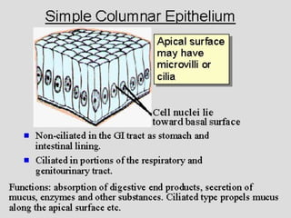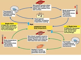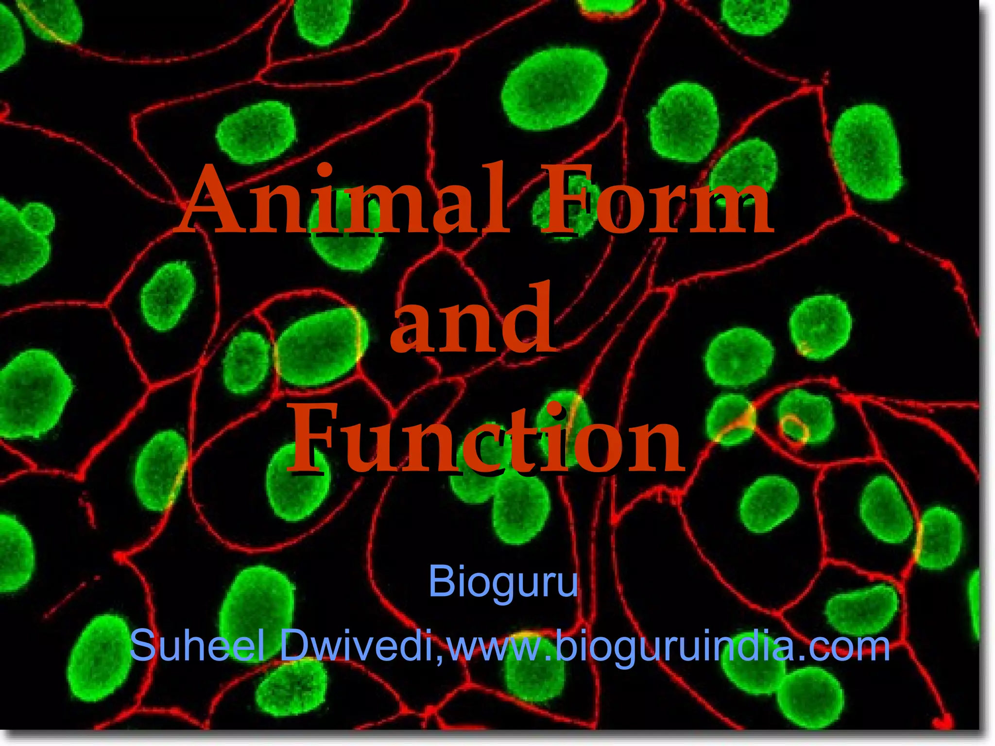 The document provides an overview of animal form and function, detailing the different types of tissues—epithelial, connective, muscle, and neural—along with their characteristics, functions, and subcategories. It explains cellular structures, the extracellular matrix, and describes the roles of various cells and tissues in supporting bodily functions. Additionally, it discusses metabolism, thermoregulation, homeostasis, and the mechanisms that maintain a stable internal environment in animals.