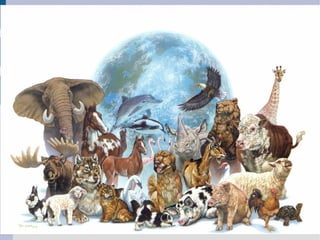 This document summarizes the differences between domestic and wild animals. It notes that domestic animals like cats and cows live near or on farms with people, while wild animals like tigers and wolves live freely in nature.