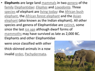 Elephants are the largest living land animals, with a gestation period of 22 months, the longest of any land animal. Giraffes are the tallest living animal species and the largest ruminant, averaging 4.3-5.2 meters tall for males and 1,200-830 kilograms for males and females, respectively. Monkeys are generally considered intelligent primates that are not prosimians or apes, with 264 known extant species that have tails unlike apes.