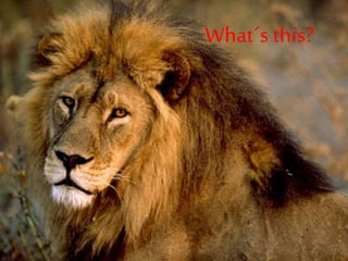 The document identifies various animals by name when prompted with "What's this?". It includes common farm and domestic animals like cows, chickens, dogs and cats as well as wild animals such as lions, giraffes, monkeys and elephants. In total, 24 different animals are identified.