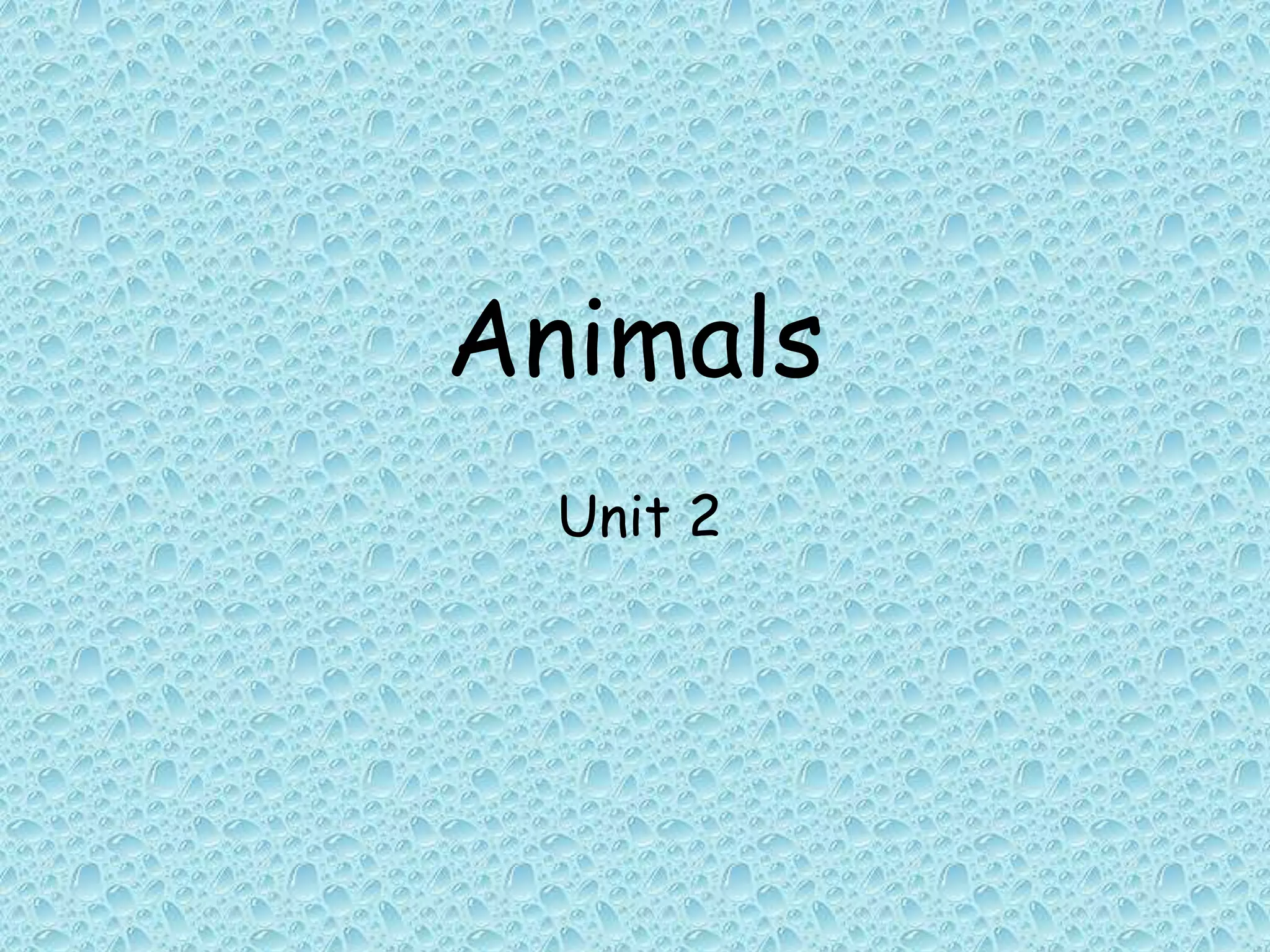 This document lists various animals including: dog, cat, parrot, elephant, octopus, fish, penguin, gorilla, snake, bear, hippo, camel, flamingo, zebra, monkey, pig, tiger, horse, chicken, mouse, bird, lion, dolphin, giraffe, cow, frog, turkey, rabbit, sheep, and turtle. It is organized into two sections, "Animals" and "Unit 2" and provides a simple list of animal names without further details about each one.