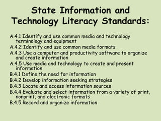 The document outlines a lesson plan for 3rd grade students to research and present information about different animals. It provides objectives, procedures, and an example of a student project on the red-eyed tree frog. Students will gather facts from print and online sources to answer questions about their chosen animal. They will then create a presentation using technology to communicate their findings to the class. The teacher will assess the students' research and presentation skills.