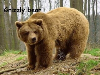 This document discusses several endangered animal species including grizzly bears, pandas, polar bears, tigers, gorillas, sloths, koalas, otters, rhinos, white sharks, turtles, whales and various bird species. It emphasizes that these animals have a right to continued existence and encourages actions like not littering, turning off taps, and using public transport to help conserve resources and ensure a better future for endangered wildlife.