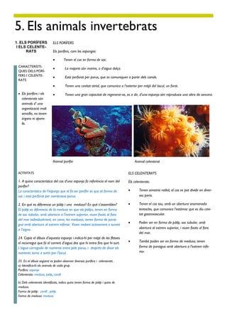 1. A quina característica del cos d’una esponja fa referència el nom del Els celenterats:
