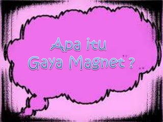 Gaya magnet adalah gaya tarik/tolak pada benda magnet yang memiliki dua kutub, yaitu utara dan selatan. Magnet dapat menarik logam dan dapat dibuat dengan cara digosokkan pada benda tertentu ataupun melalui aliran arus listrik yang menimbulkan medan magnet. Selain itu, benda magnetis yang menempel pada magnet dapat menjadi magnet dan menarik benda-benda magnetis lainnya.