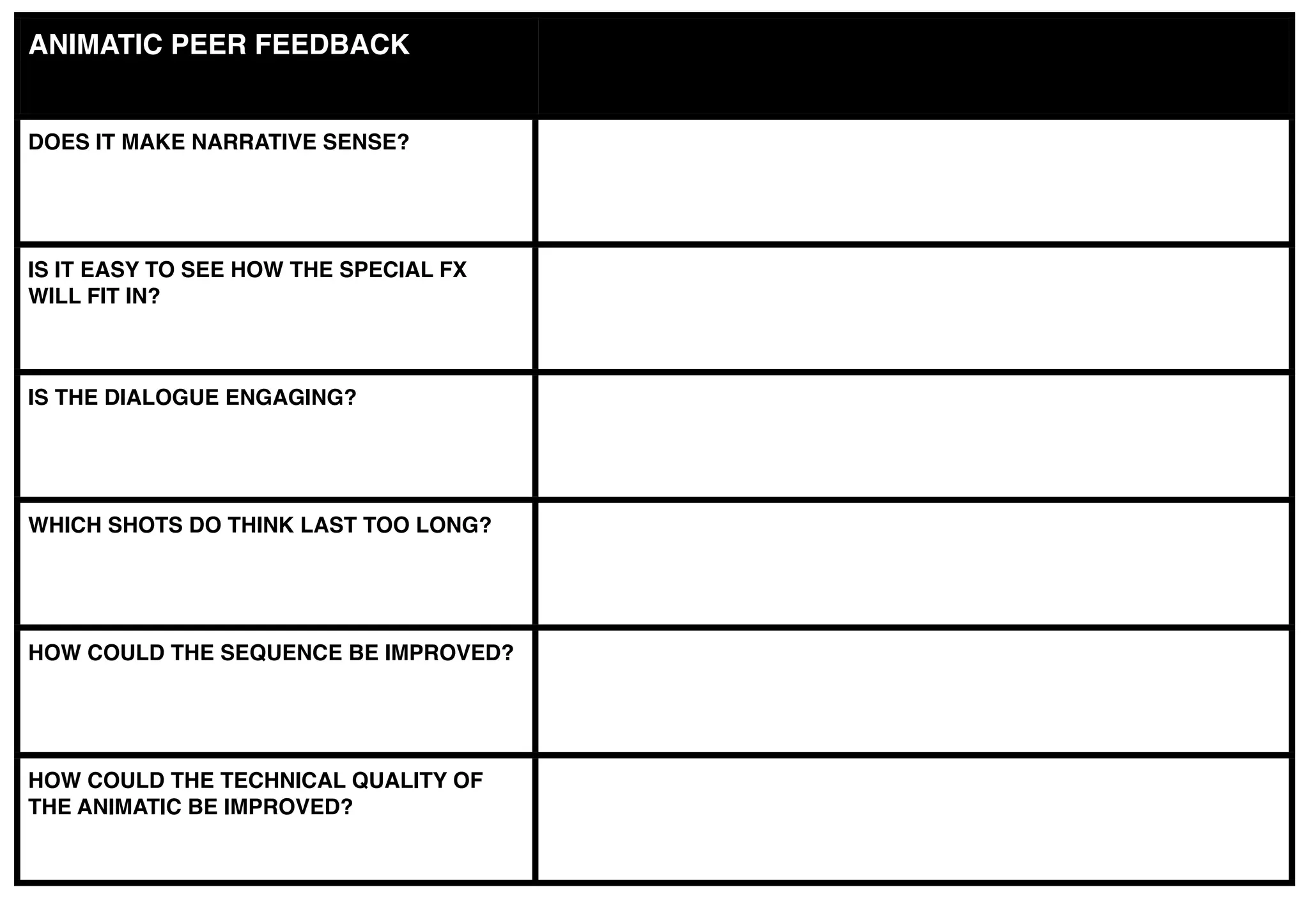 The animatic narrative makes sense but lacks flow, making it less engaging. It is difficult to see how visual effects will integrate due to lack of story context. The dialogue makes sense but does not flow smoothly, with some breaks and pauses. All shots are longer than needed. Technical quality of the animatic could be improved by emphasizing visual effects in editing software. When filming, the sequence could be improved by addressing errors identified in feedback.