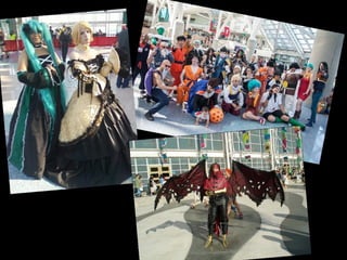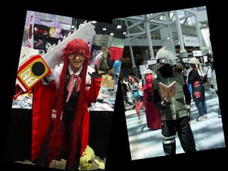 This document provides an overview of anime and manga. It begins by explaining that manga are Japanese comics that are adapted from anime shows. It then discusses some of the earliest and most influential anime shows from Japan, including Tetsuwan Atomu and Astro Boy. It notes that while Astro Boy was popular in North America, later shows were deemed too violent for children. Over time, anime and manga grew increasingly popular in Japan and also spread to other countries. The document concludes by recommending some famous anime titles and discussing activities at anime conventions like cosplay and shopping for merchandise.