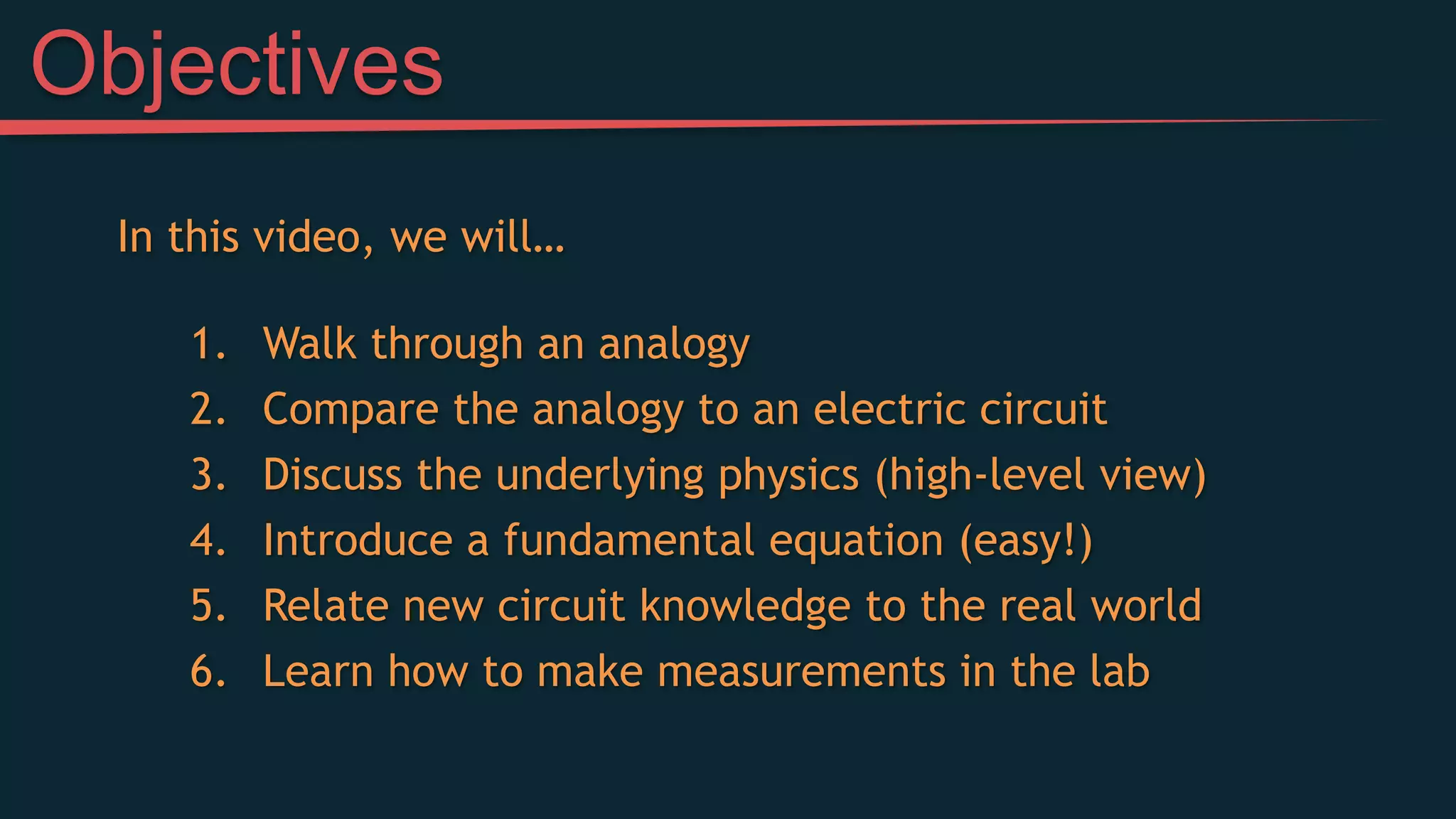 This document provides an introduction to simple electric circuits through an analogy to hydraulic circuits. It compares water flowing through pipes to electrons flowing through wires, with pumps supplying pressure, valves controlling flow, and resistors impeding flow. Key circuit elements like batteries, which provide voltage to push electrons, and resistors, which limit current, are explained. Ohm's Law, which relates voltage, current, and resistance, is derived. The document concludes by discussing measuring voltage and current in a circuit using a multimeter.