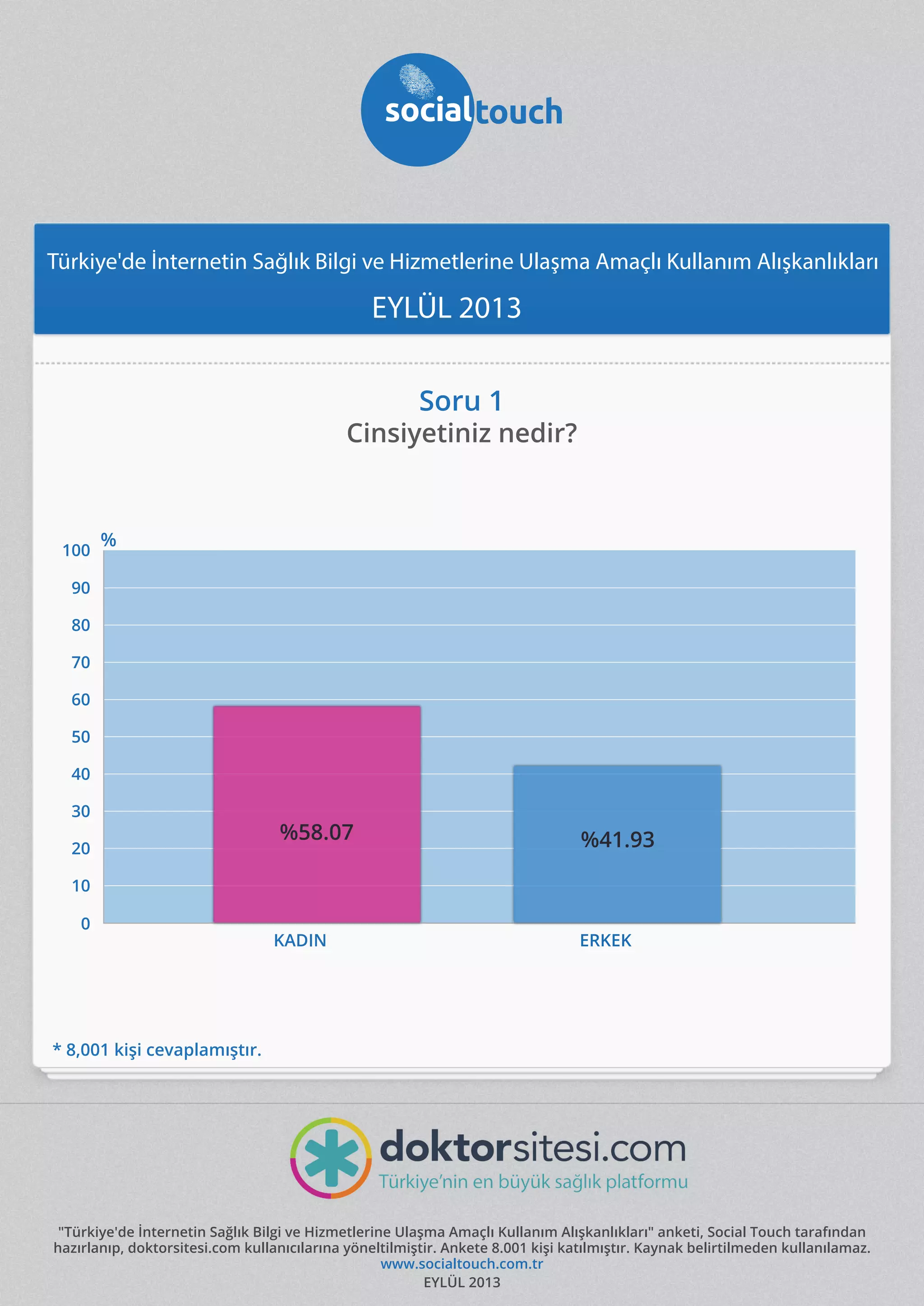 hazırlanıp, doktorsitesi.com kullanıcılarına yöneltilmiştir. Ankete 8.001 kişi katılmıştır. Kaynak belirtilmeden kullanılamaz.