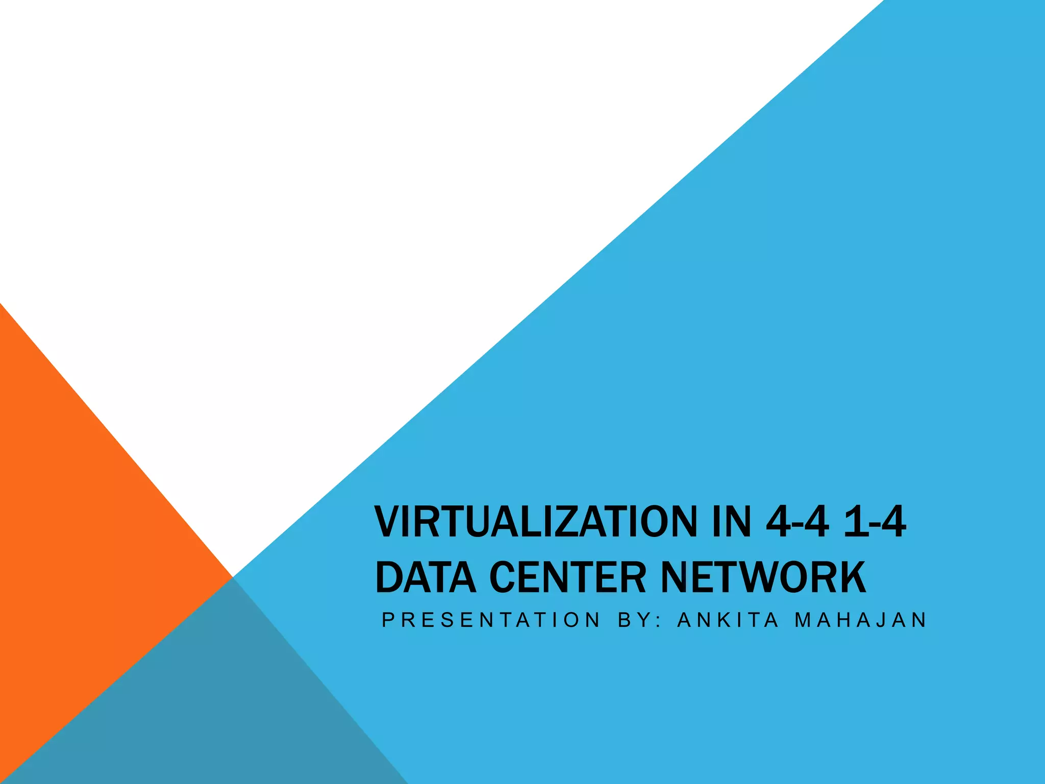 The document presents the 4-4 1-4 data center network architecture, focusing on the advantages of virtualization for improved agility and scalability while reducing operational costs. It outlines a proposed solution for virtualizing this architecture using a static IP allocation method alongside dynamic virtual machines, demonstrating performance through simulations of various workloads. The results suggest significant improvements in throughput and reduced latency, though the architecture shows limitations in compute-intensive scenarios.