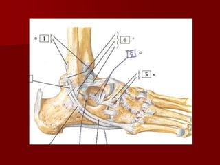 The document discusses ankle injuries in gymnastics, emphasizing the importance of sport-specific care to reduce injuries and enhance performance. It outlines common complaints, causes of injuries, and essential anatomical concepts, as well as detailed exercises and balance training for recovery and prevention. Additionally, it highlights the role of muscle imbalances and proprioception in maintaining ankle health.