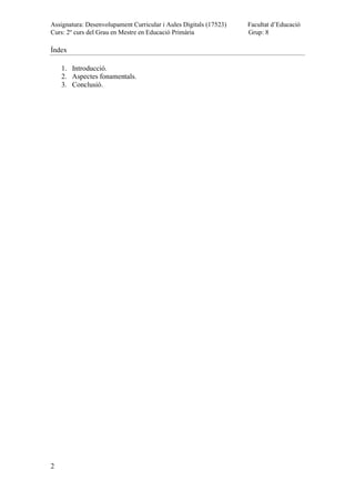 Assignatura: Desenvolupament Curriculari Aules Digitals (17523)