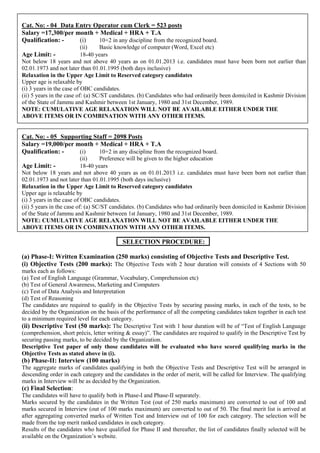 The National Health Care Organization is accepting applications for various positions totaling 4716 vacancies. There are openings for 523 District Coordinators requiring post-graduate degrees, 523 Instructor roles requiring ANM or GNM qualifications, 1049 Field Assistant jobs requiring graduation degrees, 523 Data Entry Operator cum Clerk roles requiring 10+2 education, and 2098 Supporting Staff positions requiring 10+2 education. The application deadline is June 8, 2013. The document provides details on age limits, qualifications, salary, selection process, and how to apply for the different roles.