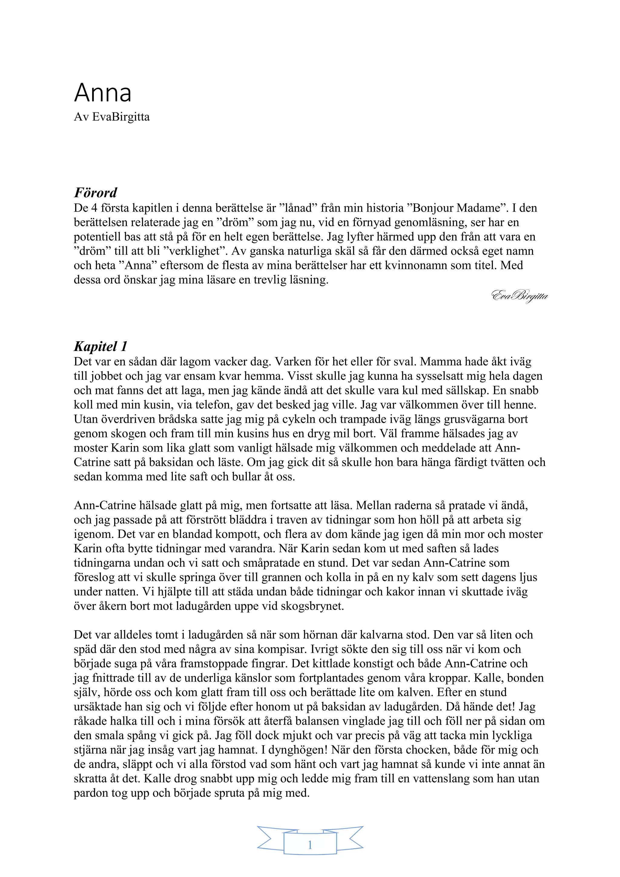 De 4första kapitlen i denna berättelse är ”lånad” från min historia ”Bonjour Madame”. I den