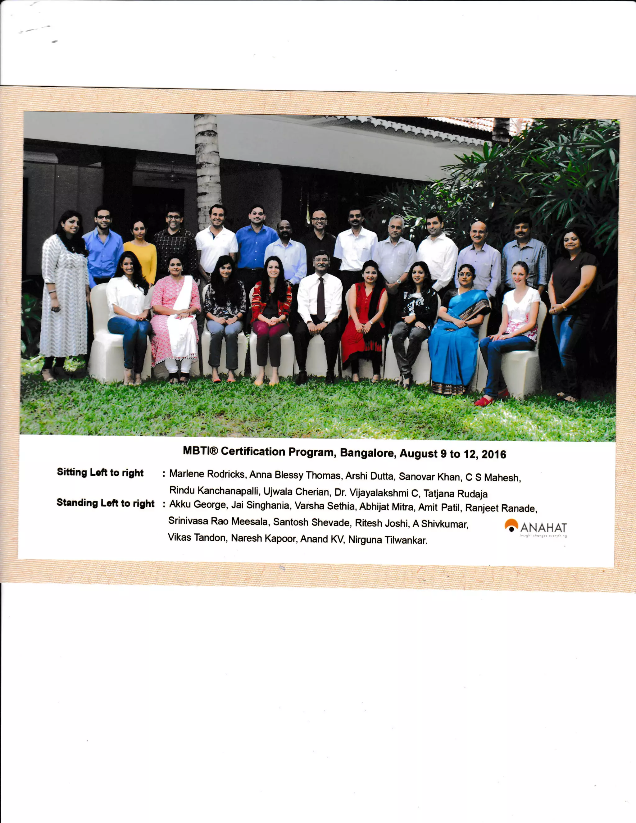 This document is a group photo of people attending an event. It shows 15 individuals either sitting or standing left to right. The photo captions the names of each individual in the photo from left to right. The photo is of people attending an event for Anahata, a nonprofit organization.