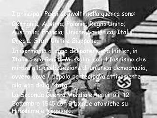 La seconda guerra mondiale è iniziata il 1° settembre 1939, con Hitler al potere in Germania e la diffusione del nazismo, caratterizzato da antisemitismo e persecuzioni. La storia di Anna Frank, iniziata con la sua emigrazione in Olanda, culmina nel suo nascondiglio con la famiglia per sfuggire alla persecuzione nazista; alla fine, solo il padre Otto sopravvive, mentre il suo diario diventa un simbolo della Shoah. Oggi, il luogo del suo nascondiglio è un museo che attira ogni anno circa un milione di visitatori.