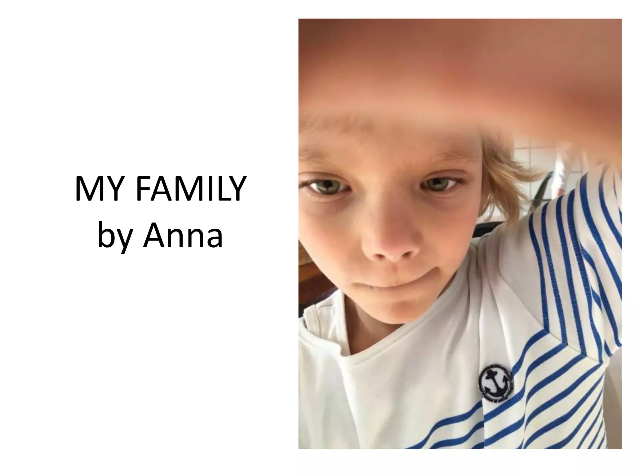 This drawing shows Anna's family, including herself jumping on a trampoline in her favorite room. She expresses love for coco but hate for salami, and has a pet dinosaur named Zuzu.