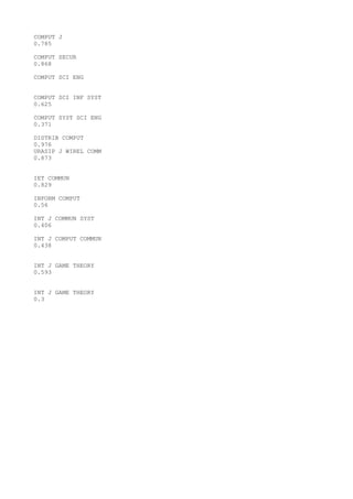 The document lists various computing and informatics journals along with their respective impact factors. There are over 15 journals listed ranging from Computing and Informatics to International Journal of Software Engineering and Knowledge with impact factors ranging from 0.129 to 0.976.