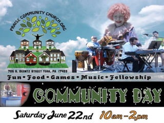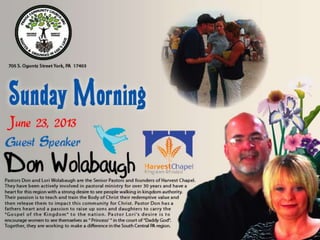 The document contains a weekly schedule for a church with times for various worship services, prayer meetings, bible studies and youth programs from Sunday to Saturday. It also lists the dates and times for an upcoming Vacation Bible School program scheduled for July 8th through 11th from 6pm to 8pm Monday through Thursday.