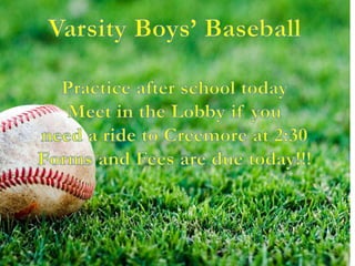2) A bracelet was found at the dance on Friday night and can be claimed at the office by describing it to Ms. Naismith.