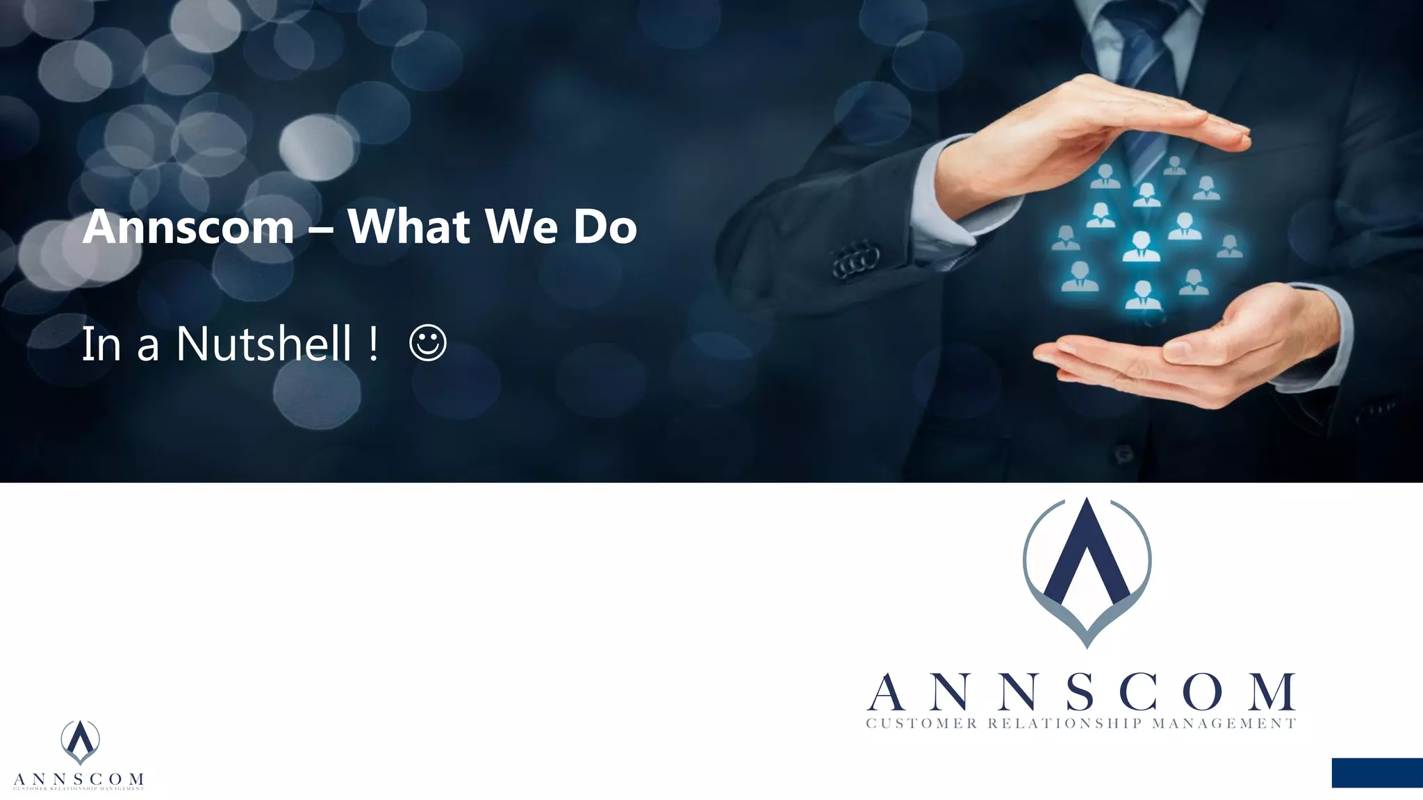 Annscom is a CRM specialist provider founded in 2013 with over 30 consultants across international offices. They focus on implementing, consulting, and providing operational support for CRM technologies. Their services include CRM technology integration and customization, process consulting and project management, as well as marketing automation, data management, and campaign management to help companies better understand and engage customers throughout the customer journey. Their goal is to align businesses around customers through effective use of CRM and marketing automation technologies.