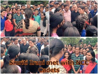 The document details various activities and events involving NCC cadets at To Vaish Model Sr. Sec. School in Bhiwani. Activities include participation in International Yoga Day, an Independence Day parade, a rally against firecrackers, and a visit to the Parliament Museum. The NCC cadets are also mentioned to have been involved in events at the Hissar Air Station and military station.